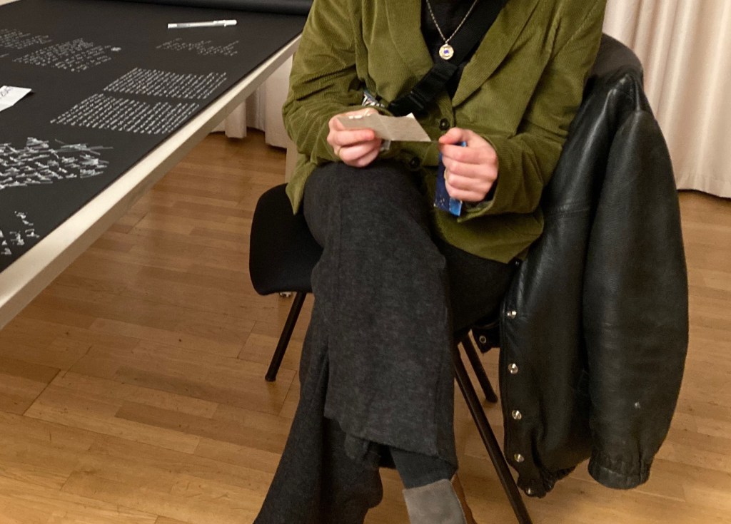 The work unfolds as a series of intimate one-on-one encounters, where visitors and the artist co-write reflections on time—both present and future. This act invites participants to collectively imagine what lies ahead, positioning them as both witnesses and custodians of time.